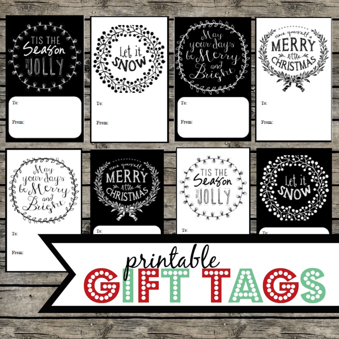Black And White Christmas Gift Tags Treat Tags Printable PDF Download Etsy