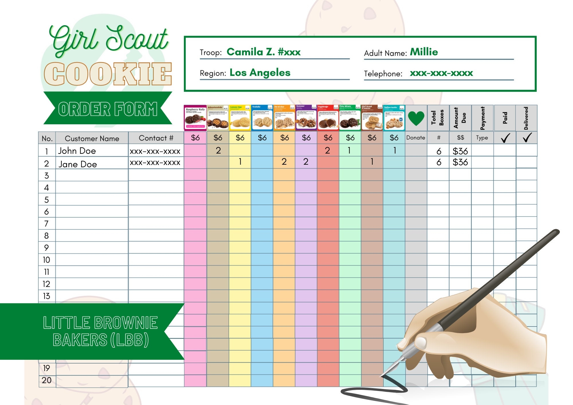 2021 Girl Scout Cookie Order Form For Little Brownie Bakers LBB Etsy