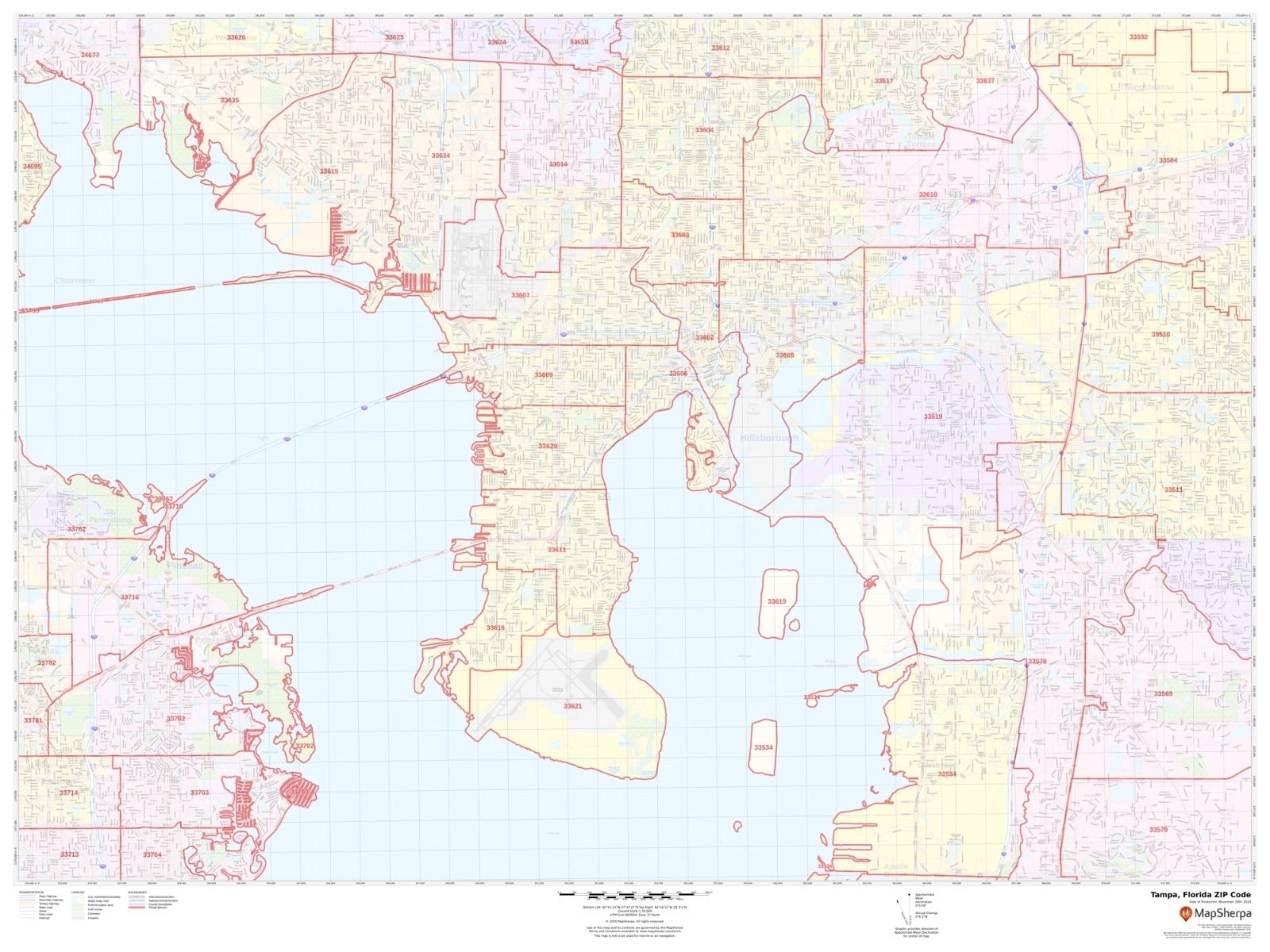 Hillsborough County Florida Zip Codes By Map Sherpa The Map Shop