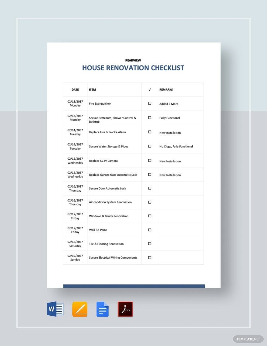 Printable Home Renovation Checklist Template
