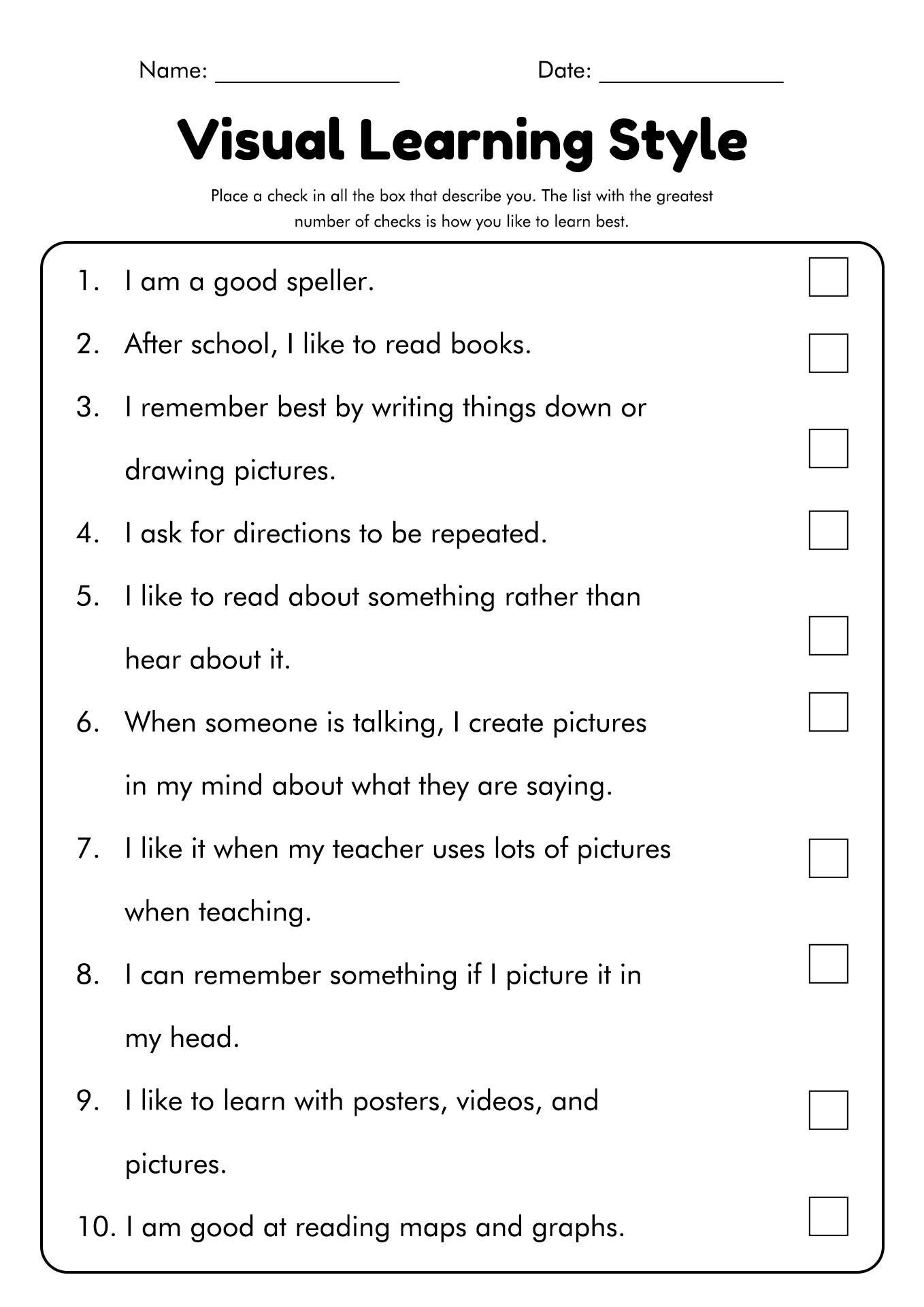 Learning Styles Quiz PDF Learning Styles Visual Perception Worksheets Library