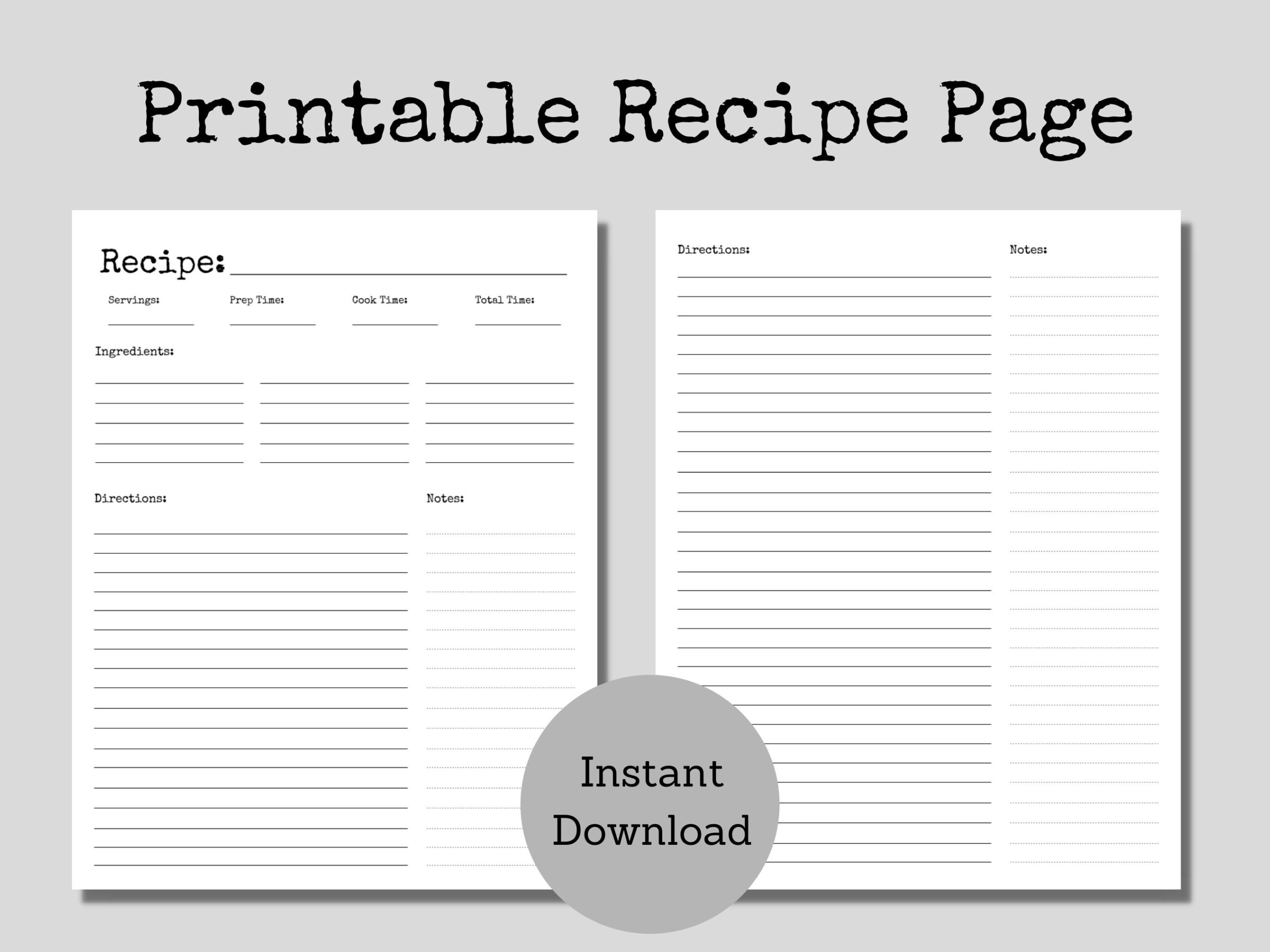 Blank Recipe Page Recipe Card Recipe Template Typewriter Style Etsy