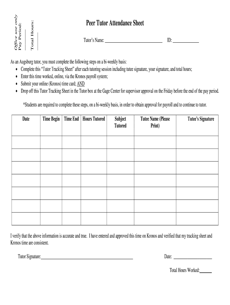 Peer Tutor Attendance Sheet Fill Out Sign Online DocHub