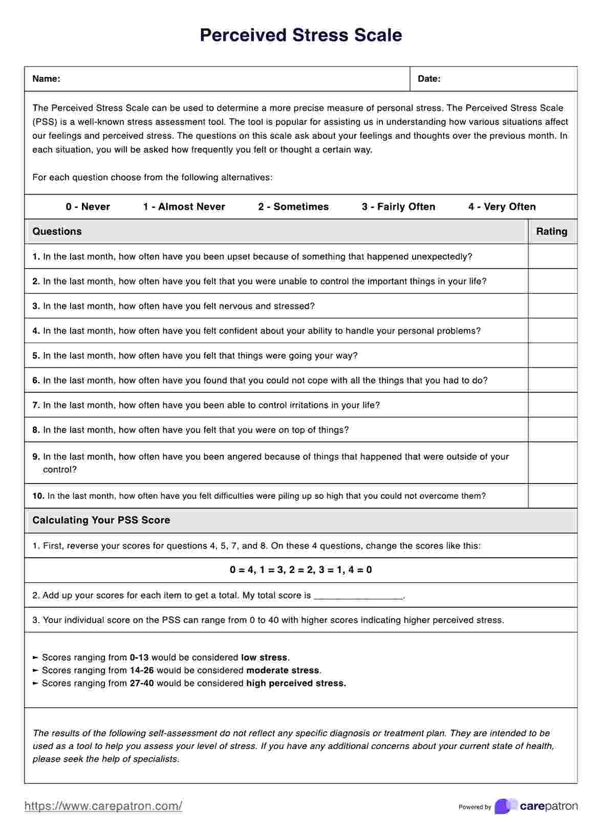 Perceived Stress Scale PSS Example Free PDF Download