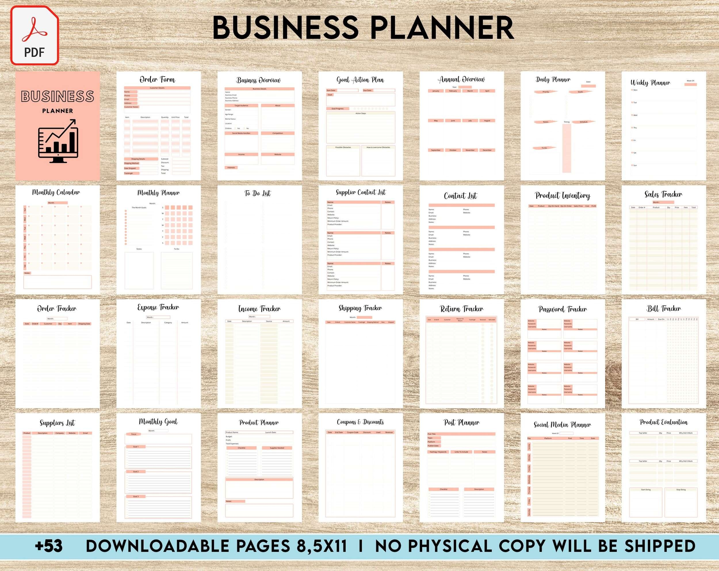 Business Planner Small Business Plan Online Business Planner Business Planner Sheets PDF Printable 8 5×11 A4 Size Planners Weekly
