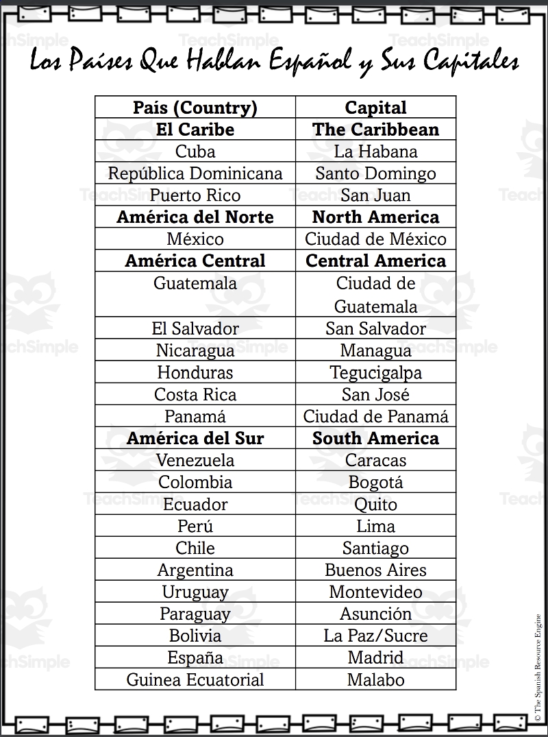 Spanish Countries And Capitals Speaking Spanish Maps By Teach Simple