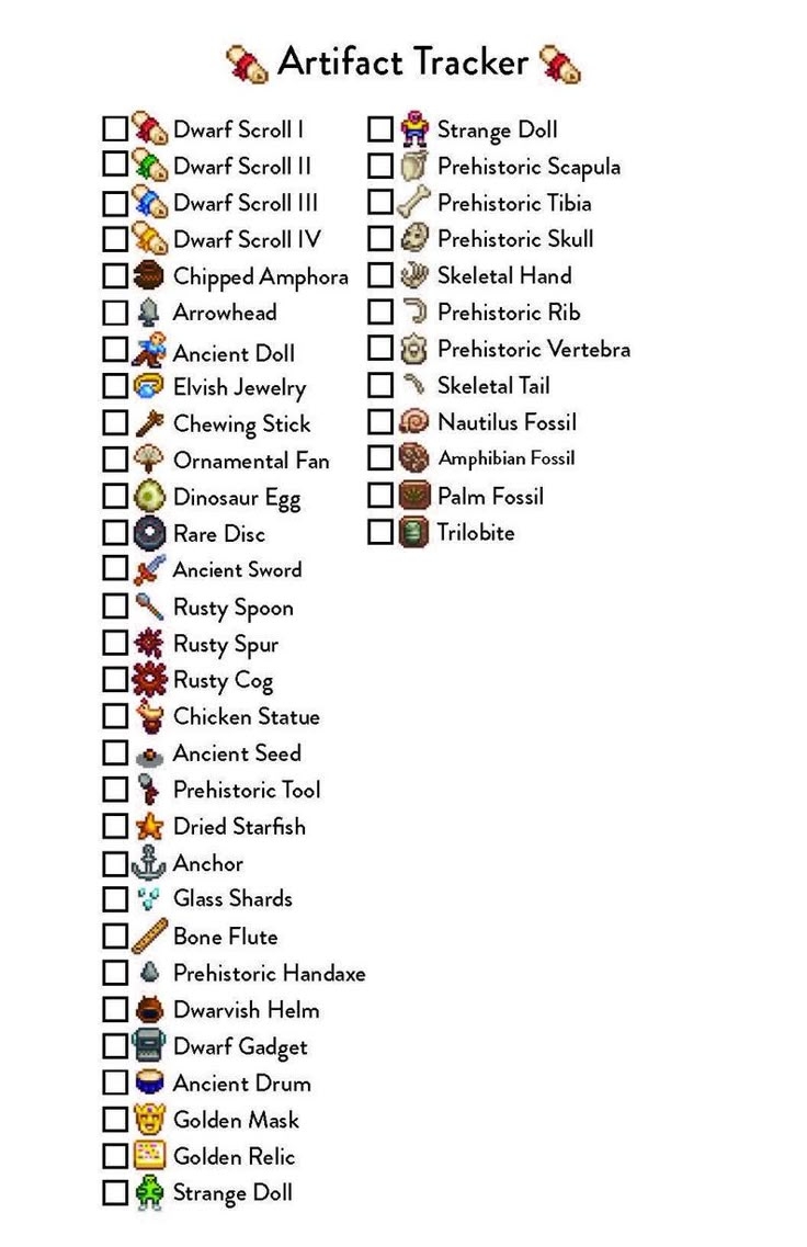 Printable Digital File Stardew Valley Tracker Artifact Collection Order Etsy