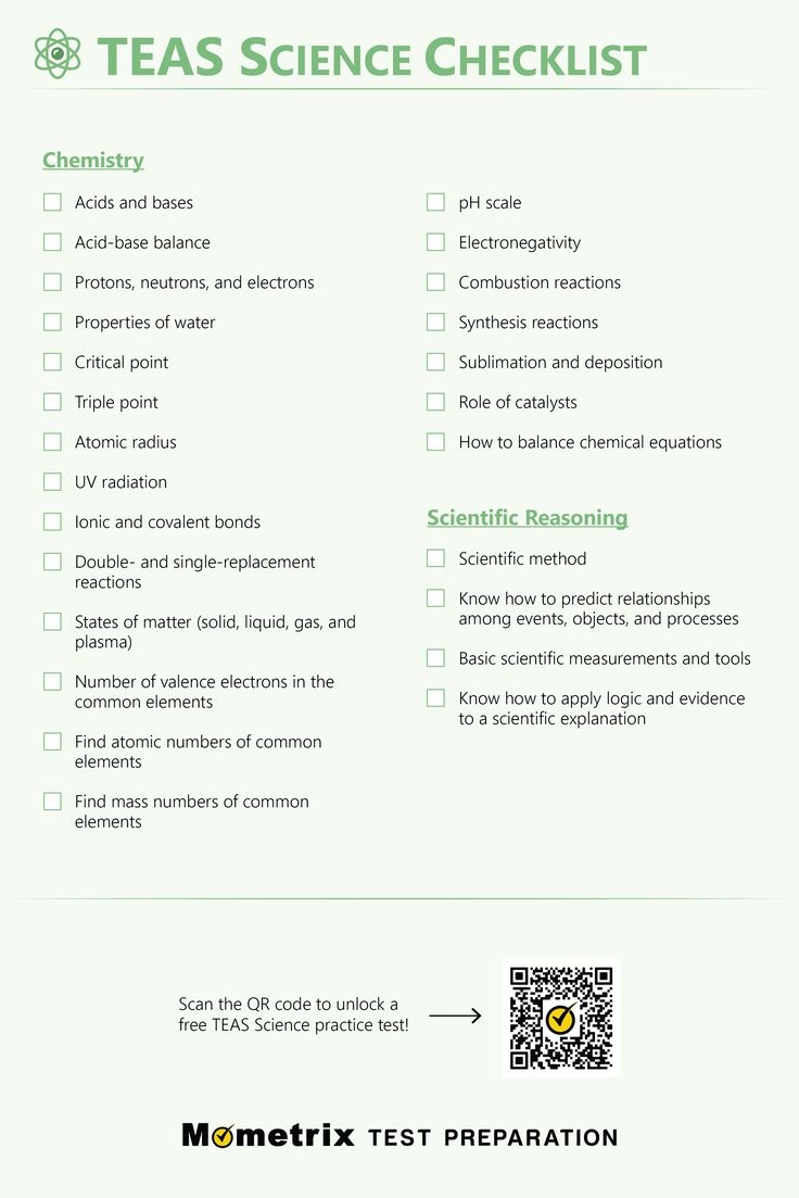 Printable TEAS Test Checklists All Sections