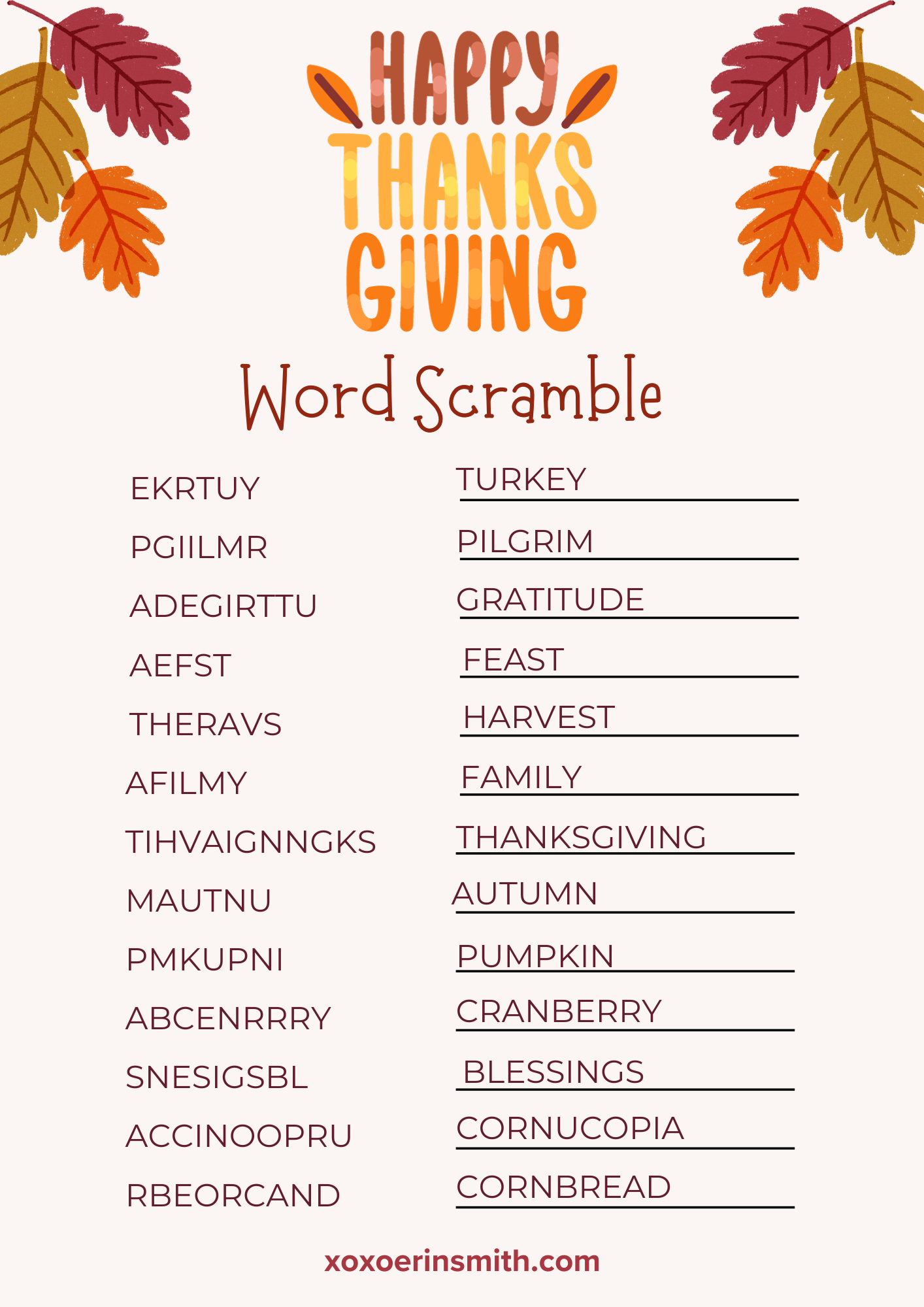 So, this Thanksgiving, why not add some extra fun to your celebration with Thanksgiving word games? Whether you choose a word search, a crossword puzzle, or a game of charades, these games are sure to be a hit with your guests. And the best part? You can easily find free printable versions online to make hosting a breeze!