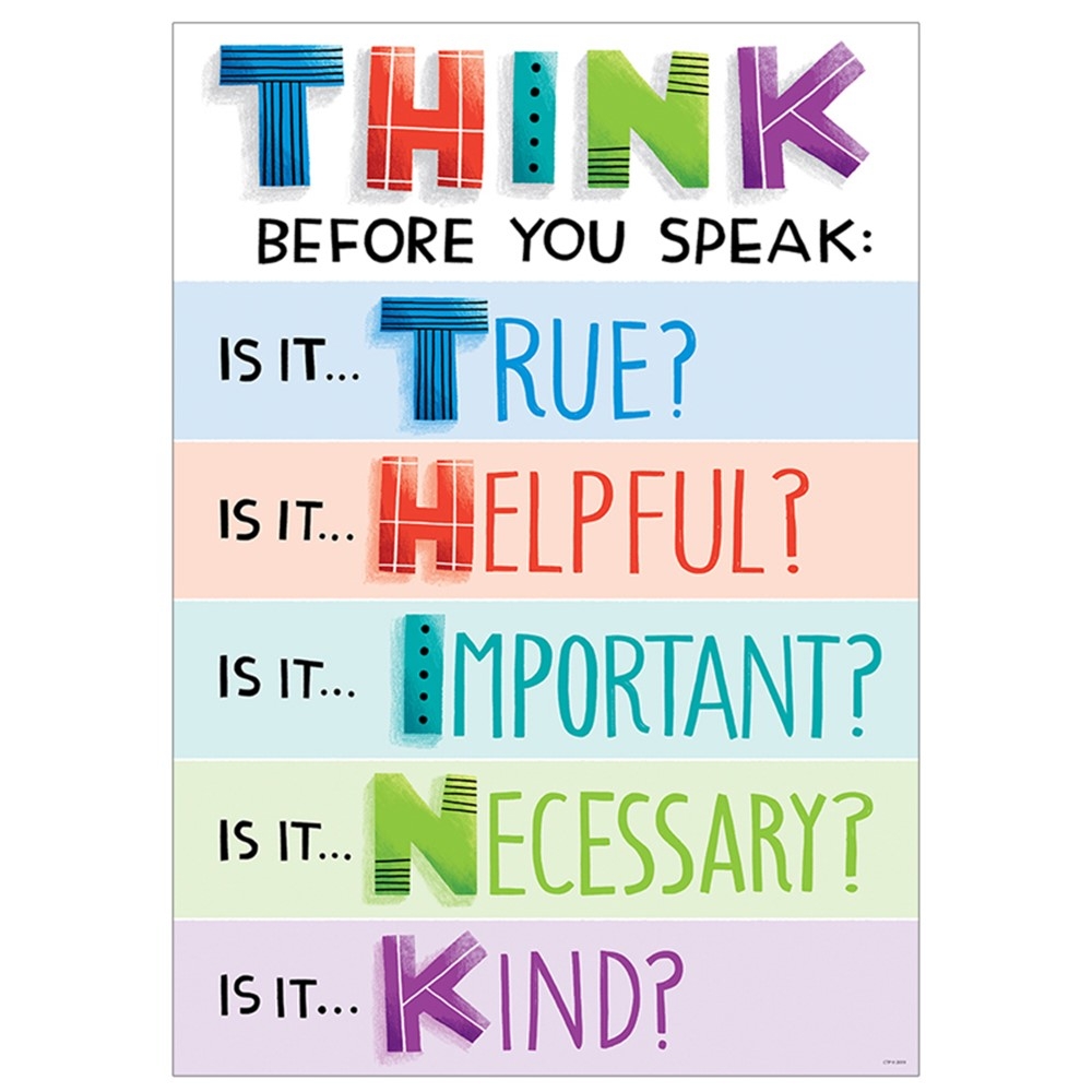 THINK Before You Speak Motivational Classroom Poster Or Print Unframed Instant Digital Download Printable Etsy