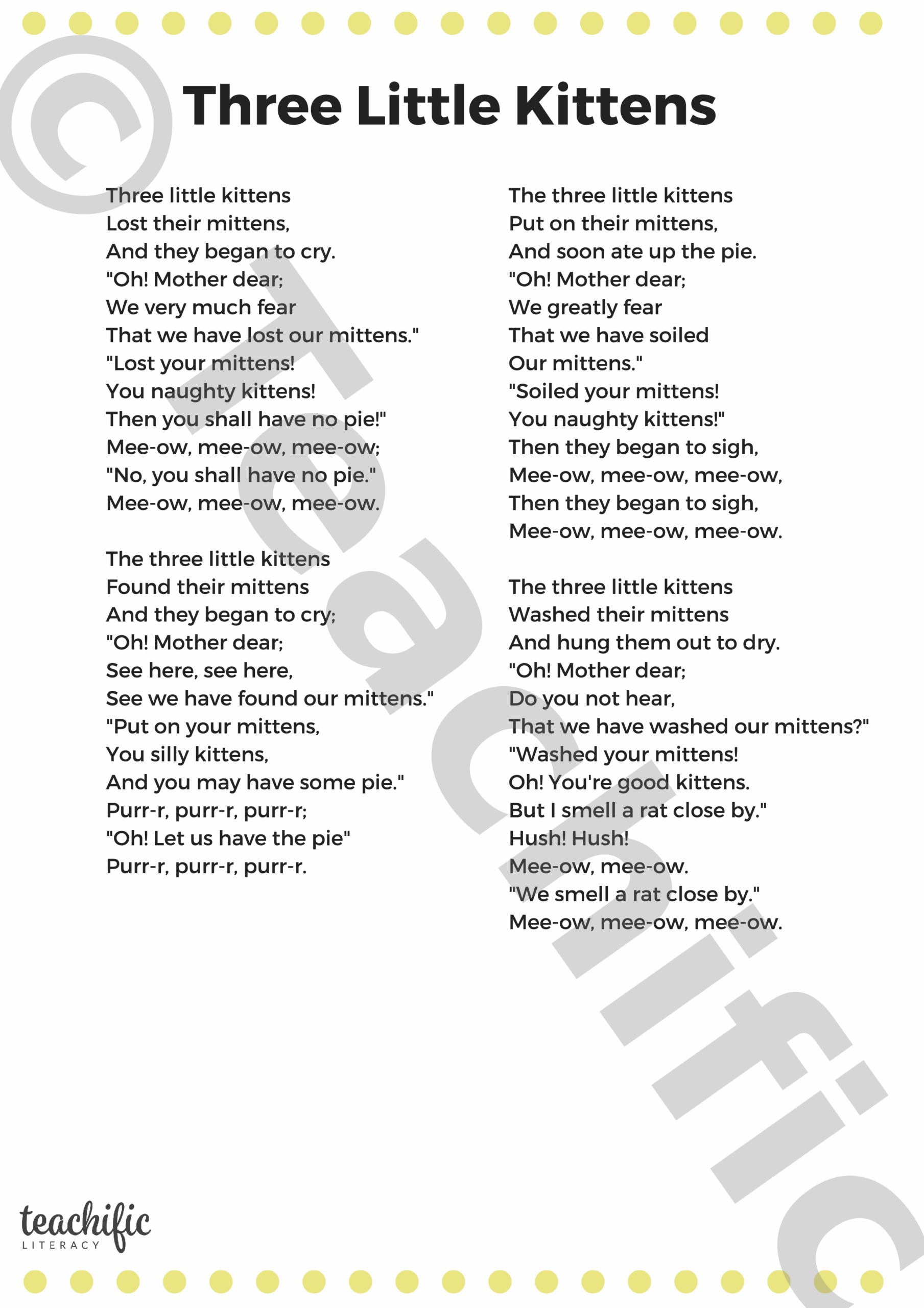 So, whether you’re looking for a fun activity to do at home or a way to supplement your child’s learning, the Three Little Kittens poem printable is a fantastic option. It’s educational, entertaining, and sure to bring joy to both you and your little one!