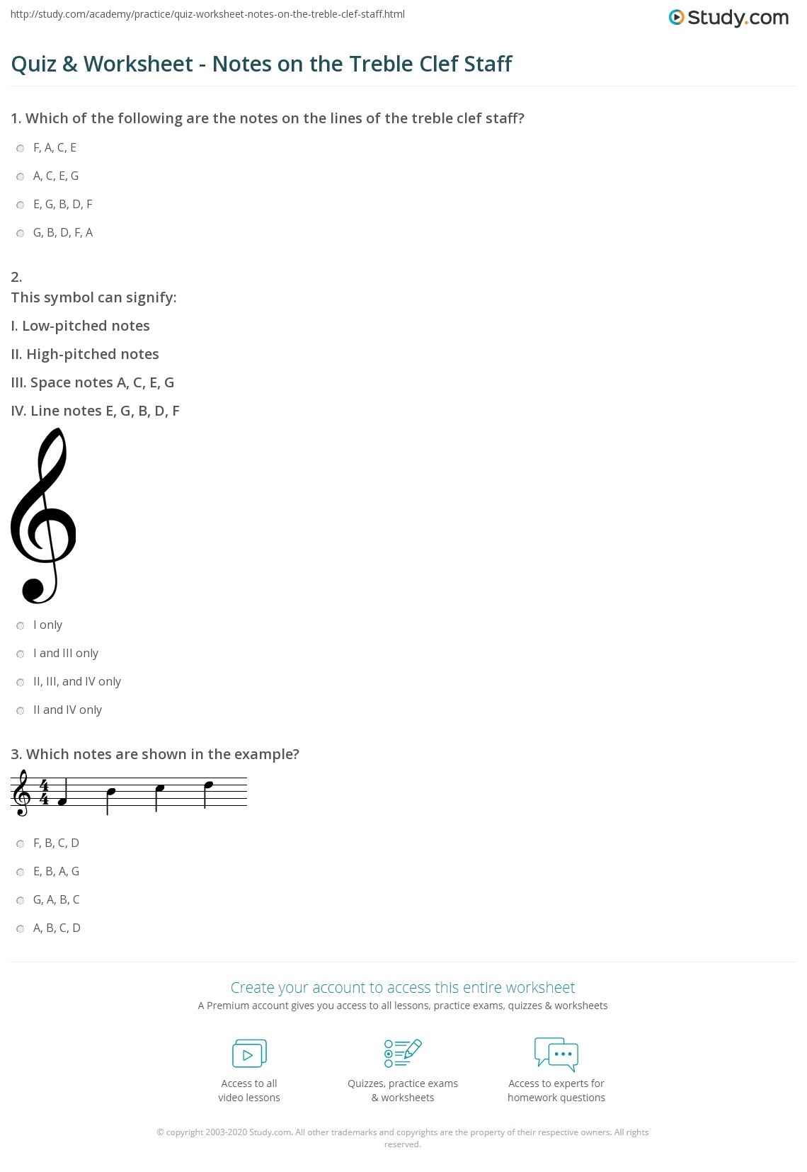 Quiz Worksheet Notes On The Treble Clef Staff Study