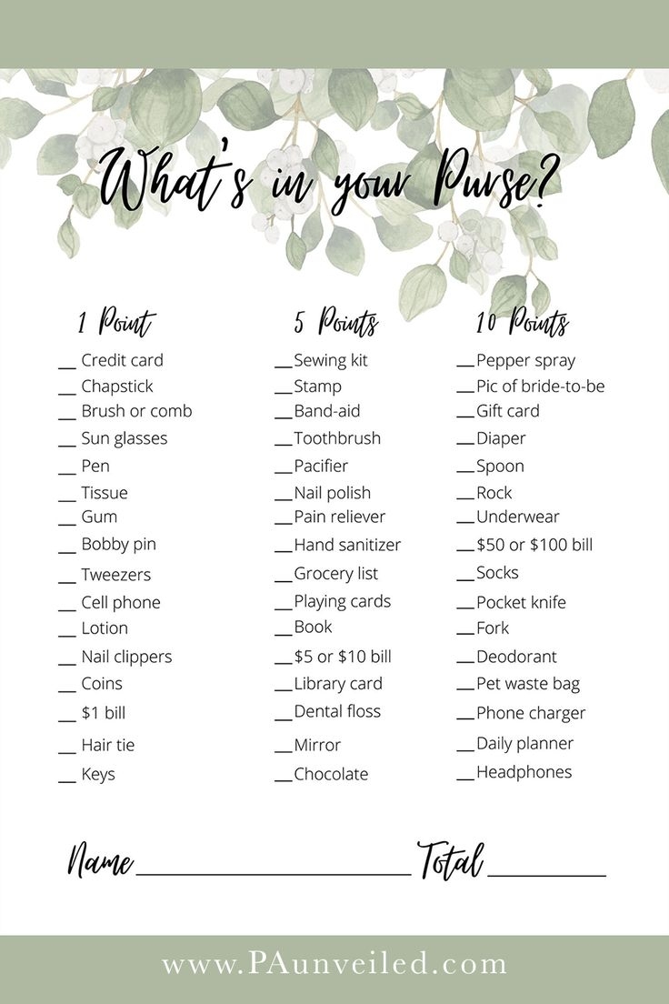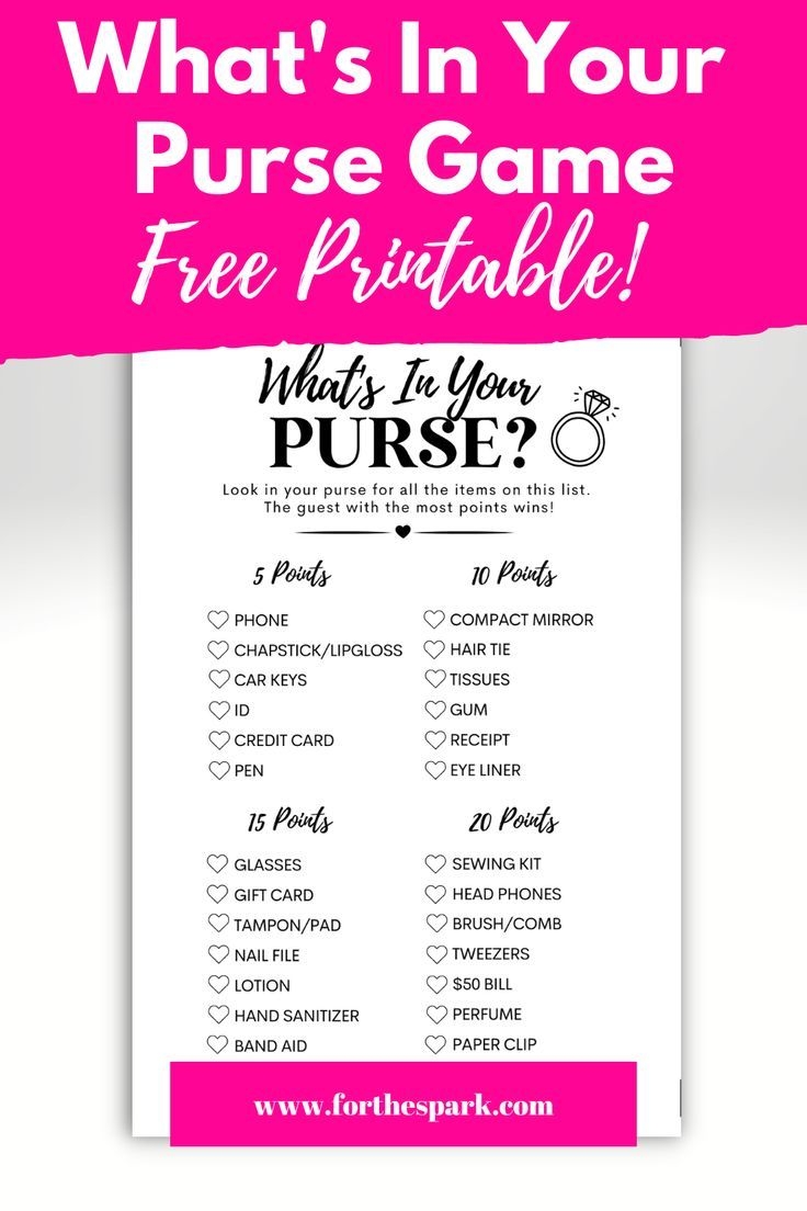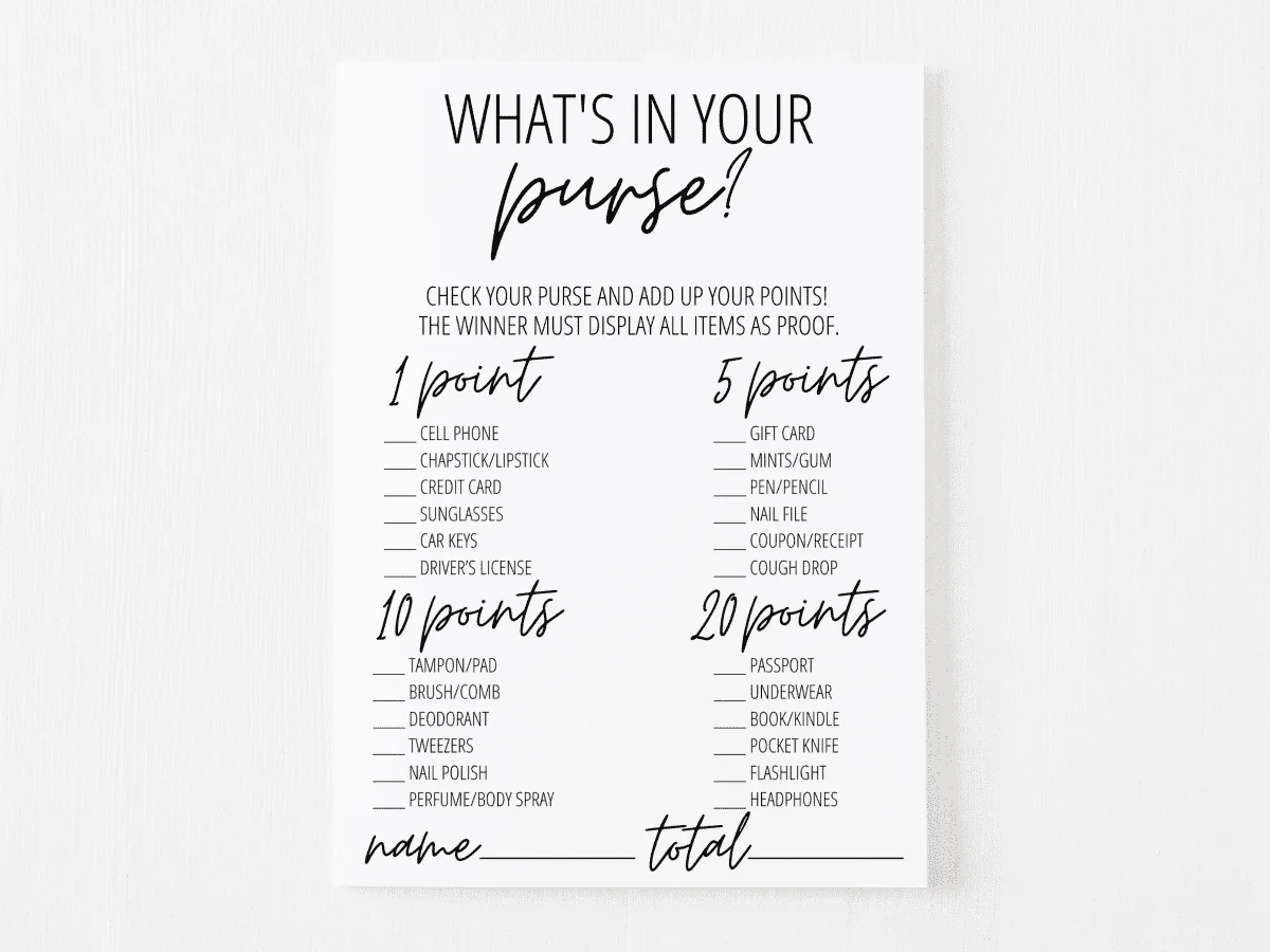What s In Your Purse Game Printable Card My Party Design